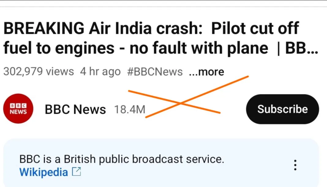 अहमदाबाद प्लेन क्रैश को लेकर एअर इंडिया की फ्लाइट-AI171 के प्लेन की AAIB (एयरक्राफ्ट एक्सीडेंट इन्वेस्टीगेशन ब्यूरो) की रिपोर्ट सामने आ चुकी है। इसके बाद भी शनिवार (12 जुलाई 2025) को विदेशी मीडिया संस्थानों जैसे रॉयटर्स, बीबीसी, डेली मेल आदि ने इस रिपोर्ट को जानबूझकर गलत तरीके पेश किया।