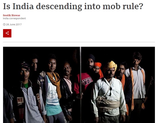इसी लेख में कहा गया था कि नरेंद्र मोदी की नजरों के सामने भारत एक ‘भीडतंत्र (Mobocracy)’ में बदलता जा रहा है और अल्पसंख्यकों की सुरक्षा में कानून व्यवस्था असमर्थ नजर आ रही है। लेख में यहाँ तक कह दिया गया कि मोदी सरकार हिन्दू भीड़ को रोकने में असमर्थ है या रोकना ही नहीं चाहती है।