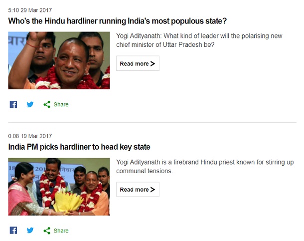 लेकिन यह सिर्फ टाइम मैग्जीन की बात नहीं है। विश्व मीडिया के एक बड़े वर्ग ने नरेंद्र मोदी की आलोचना ही की है। बीबीसी की खबरों को गौर से देखेंगे तो वहाँ भारत की नरेंद्र मोदी सरकार को कई मुद्दों पर घेरा गया है। कभी गौरक्षा के नाम पर तो कभी उत्तर प्रदेश के मुख्यमंत्री के लिए एक कट्टर छवि वाले एक हिन्दू संत को चुनने के नाम पर। बीबीसी ने जून 2017 में एक लेख प्रकाशित किया था जिसमें लिखा गया था कि नरेंद्र मोदी की हिन्दू राष्ट्रवादी भाजपा के शासन में गाय एक ध्रुवीकरण करने वाली जानवर हो गई है और धार्मिक विभाजन और भी बढ़ता जा रहा है।