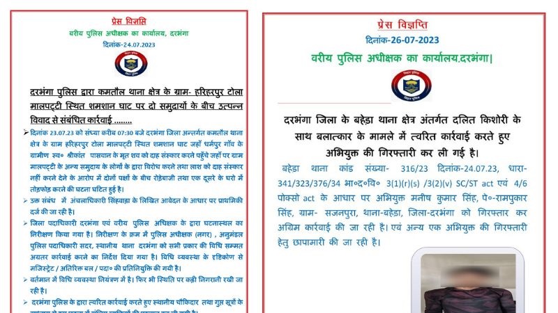 यह दूसरी बात है कि दरभंगा पुलिस इन विवादों को इस तरह पेश कर रही है, जैसे ये सामान्य घटनाएँ हो। इसी कोशिश में अब दरभंगा जिले में सोशल साइट्स बंद कर दिए गए हैं। जन संपर्क उप निदेशक ने प्रेस को जारी बयान में कहा है कि विधि-व्यवस्था के कारण 27 जुलाई की शाम से 30 जुलाई 2023 की शाम तक सोशल नेटवर्किंग सेवाएँ बंद रहेंगी।