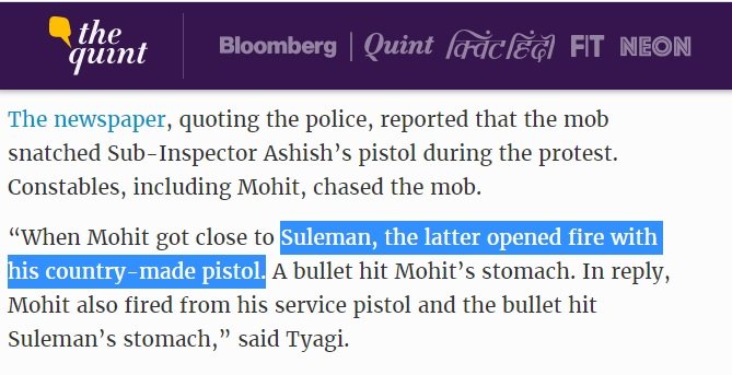 ऐसे ही, बिजनौर में दंगों के दौरान सुलेमान नाम का 20-वर्षीय UPSC अभ्यर्थी, पुलिस कॉन्सटेबल मोहित पर अपने देसी कट्टे से गोली चलाता है, जो कि कॉन्सटेबल मोहित के पेट में लगती है। उनके साथ सब-इंस्पेक्टर आशीष से दंगाई पिस्तौल छीन कर भाग जाते हैं। (अब लोग यह भी पूछेंगे कि पुलिस कैसी है कि लोग पिस्तौल छीन कर भाग जाते हैं!) गोली के हमले से घबराए मोहित अपनी सर्विस रिवॉल्वर से सुलेमान पर गोली चलाते हैं। सुलेमान बाद में मर जाता है। मीडिया में आधी कहानी चलती है कि पुलिस ने स्वीकारा कि सुलेमान को उनकी गोली लगी थी। फिर उसे देश का अगला IAS बताया जाने लगता है। कोई ये नहीं पूछता कि सुलेमान 20 साल में ही, कट्टा लेकर क्या IPS बनने की ट्रेनिंग कर रहा था?