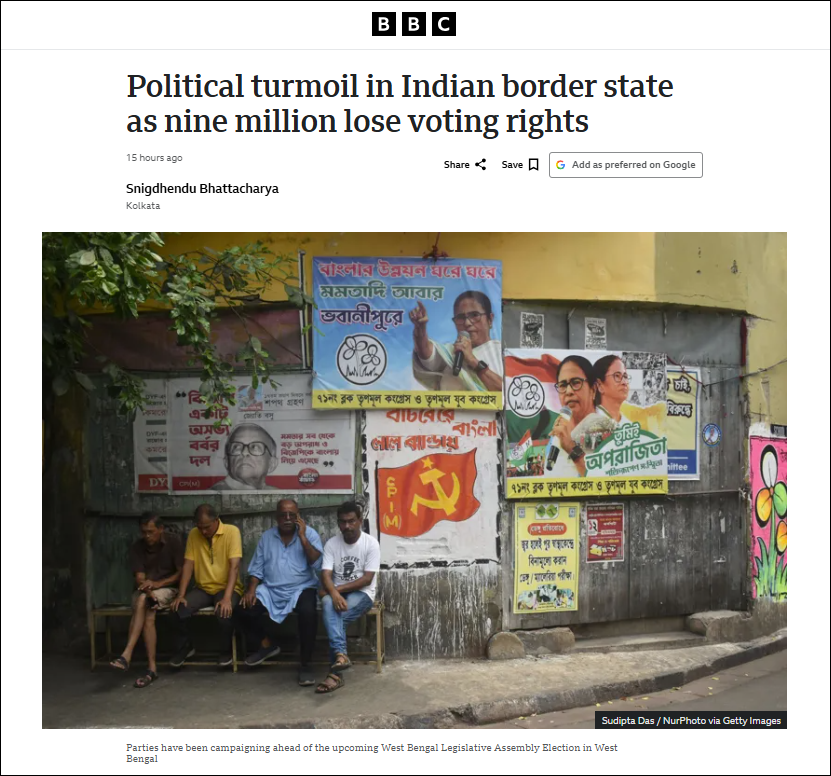 12 अप्रैल 2026 को प्रकाशित BBC के इस आर्टिकल में लिखा गया है, “भारत की बांग्लादेश के साथ 4,096 किलोमीटर लंबी सीमा लगती है, जो काफी हद तक खुली और कुछ हिस्सों में नदी के किनारे-किनारे गुजरती है। इसका एक बड़ा हिस्सा बंगाल से होकर जाता है। यही वजह है कि राज्य में प्रवासन और मतदाता सूची को लेकर होने वाली बहस को एक संवेदनशील और राजनीतिक रूप दे दिया गया है।”